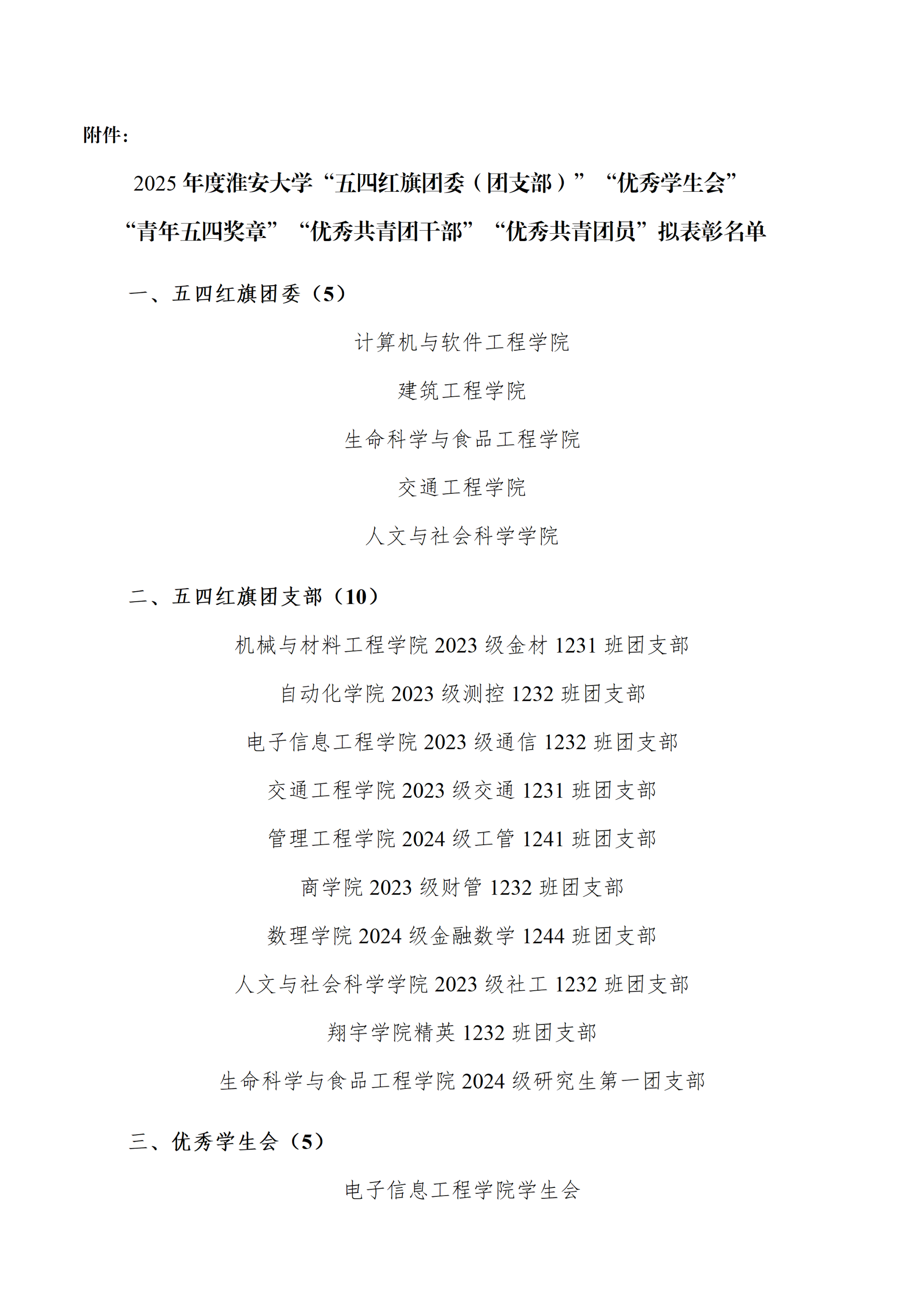 附件:2025年度淮安大学“五四红旗团委(团支部)”“优秀学生会”“青年五四奖章”“优秀共青团干部”“优秀共青团员”拟表彰名单