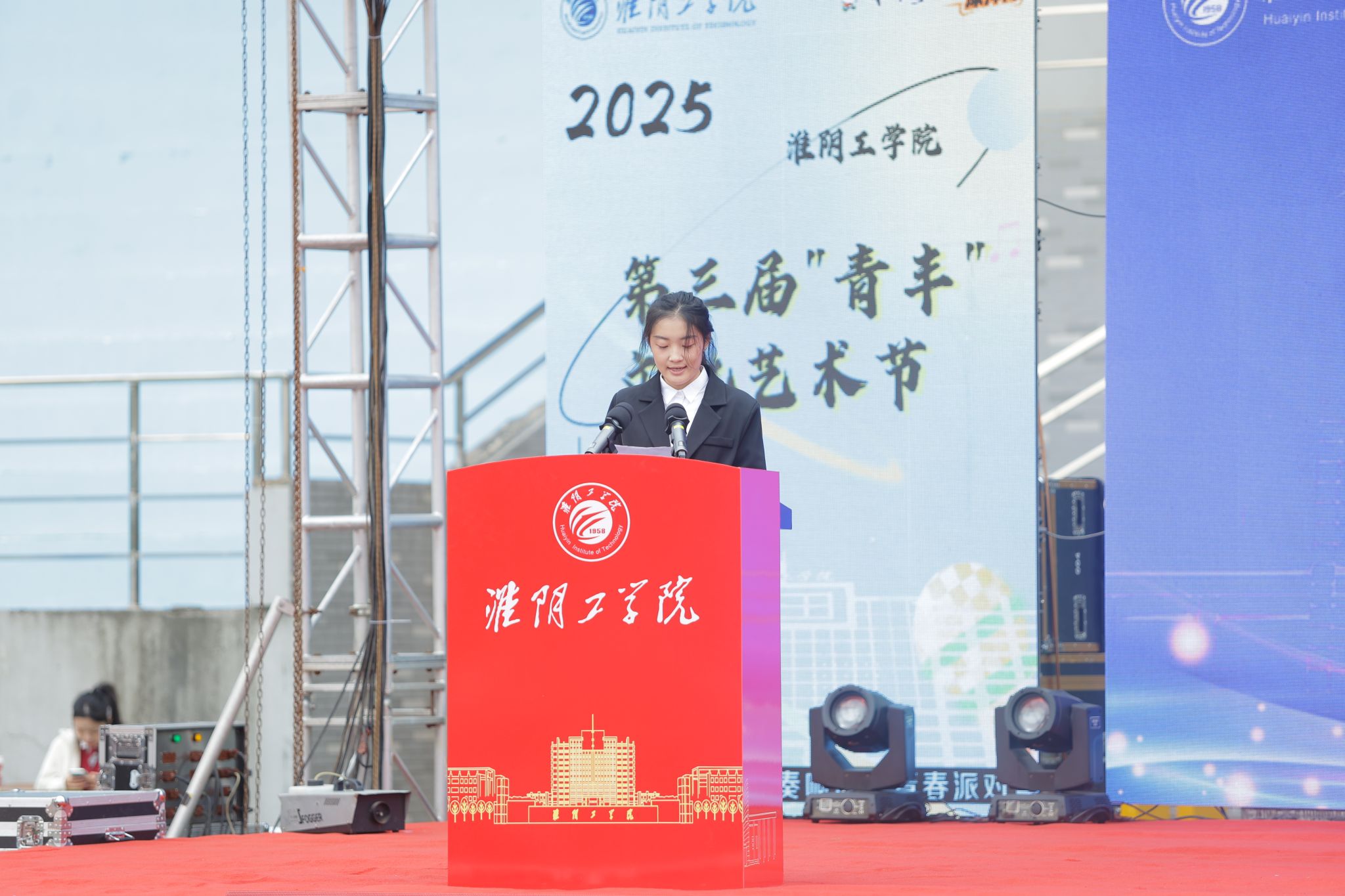 为全面学习贯彻党的二十大和党的二十届二中、三中、四中全会精神,深入落实习近平文化思想,充分发挥校园文化“以美育人、以文化人”的浸润作用,激励青年为推进中国式现代化挺膺担当,学校于2025年10月25日举办第三届“青丰”文化艺术节。本活动包含社团巡礼节、十佳歌手决赛、草坪音乐节三大环节,融入淮安红色文化元素与周恩来精神风范,为全校师生打造了一场兼具思想性与艺术性的文化活动。校党委副书记秦家沛,校党委常委、党委宣传部部长曹苏群,校党委学生工作部、党委研究生工作部部长何敬业,校关工委秘书长王启松,国际教育学院院长刘玉君出席开幕式。