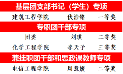 校团委就本次大赛的筹备与组织工作给予高度重视,积极动员校内专职、兼挂职团干部和优秀青年师生参与选拔,并邀请校内外相关专家提供专题培训和专业指导,前期共选送6名师生参与省赛,最终3人入围决赛。