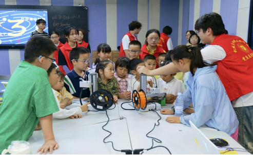 童梦机匠志愿队成立于2024年6月,2025年获批立项以来,传承了往年优秀经验与成熟做法,持续深化与淮阴区码头镇的校地合作,同时不断拓展实践阵地,新增与淮安市少儿图书馆的校地共建实践平台,进一步扩大了服务覆盖面与社会影响力。团队立足机械工程等专业学科优势,将专业知识融入趣味课堂,组织开展“机械之旅,点亮童梦之光”科普教育系列活动,如“小小创客闯工厂,科技奥秘我来寻”校园研学活动、“灵动机械臂,童梦新启航”等,通过游戏化教学、线上线下结合的互动式学习方式,以及简单有趣的实验操作和个性化教学内容,让儿童在动手实践中学习科学原理。