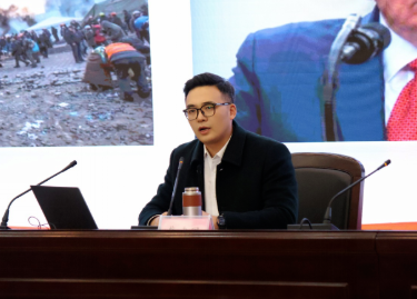 戴建国以《淮工青年当有为、必有为、更有为》为题,为学校第十七期青马学员进行全面深入解读。他指出,在中华民族伟大复兴的战略全局和世界百年未有之大变局的大背景下,我国正向中国式现代化强国迈出坚实步伐,基于这个国际国内时代背景,淮工学子当弘扬“明德尚学、自强不息”的淮工精神,把个人的追求同国家富强、民族振兴紧密联系在一起。此外,他为在座学生分析学校全力保障学生成长成才所作出的努力及取得的成绩,鼓励广大青年学子在层层历练中积累经验,以足够的本领担负起时代赋予的重任。最后,他从“有理想”、“敢担当”、“能吃苦”、“肯奋斗”四个角度对广大淮工学子提出期望。以学校60多年的校史出发,枚举多名优秀校友的先进事迹,如“我国第一颗原子弹爆炸成功六十周年纪念章”获得者——于永昌,深耕西部、服务西部志愿者——曹卓,“全国优秀共青团干部”、“江苏省优秀志愿者”——吕从西,留淮就业、服务基层工作者——齐一凡、杨宇杰等,呼吁广大学子奋力跑出青春“加速度”。