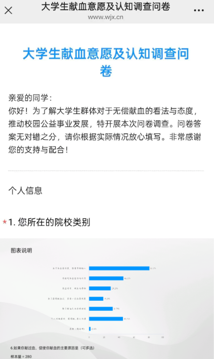 调研中,志愿者对在淮大学生展开问卷调查。结果显示,多数学生对无偿献血知识了解不足,信息多源于学校宣传和社交媒体,对流程和安全性存疑,网络负面评论导致的误解也是献血人数下降的重要因素。