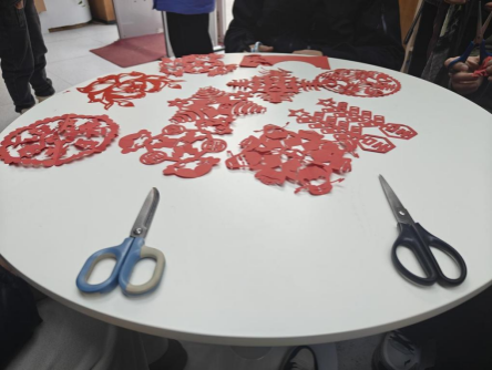 文化探寻:弘扬优秀传统。党员志愿者返回家乡,开展“福满社区,情暖夕阳”剪窗花、贴春联活动。活动中他们介绍春联和窗花的历史渊源,播放制作工艺视频,详细展示了春联书写过程中毛笔蘸墨、行笔的技巧,以及窗花折叠、裁剪的步骤。苍劲有力或飘逸灵动的书法搭配吉祥话语,栩栩如生的动物、花卉图案,引得老人们连声称赞。最后,将一幅幅寓意美好的春联和窗花悬挂起来,看着红彤彤的春联和窗花,老人们脸上洋溢着幸福的笑容,纷纷表示找回了久违的年味,感受到了浓浓的节日氛围。