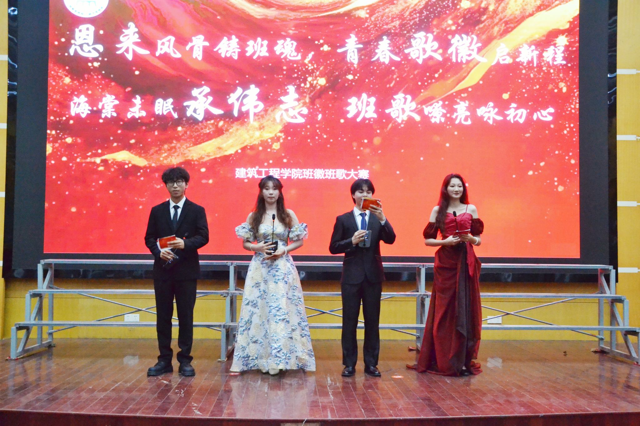 为进一步将周恩来总理的精神风范融入班级文化建设,激发学生的集体荣誉感以及创新能力,展现新时代青年昂扬向上的青春姿态,建筑工程学院于2025年5月15日晚7:30在主楼报告厅举办以“海棠依旧承伟志,班歌嘹亮咏初心”为主题的班徽班歌比赛。建筑工程学院24级全体学生参与,建工学院团委书记、24级辅导员、班主任出席活动。