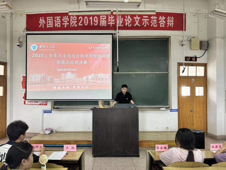 青春激荡思想火花,信仰点亮奋进征程!为深入学习贯彻习近平新时代中国特色社会主义思想,提升青年学子的思想政治素养与理论宣讲能力,6月16日,由人文学院主办的团课暨思政大比武比赛在阶梯教室火热开赛。由人文学院团委书记吴翔及学生会主席团成员孙帅文、王菲菲、郭神保、郭家媛担任评委,来自各班的团支书们同台竞技,用生动的语言、真挚的情感,带来了一场别开生面的思政教育盛宴。